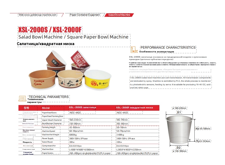 XSL-2000S /XSL-2000F Μηχανή σαλάτας /τετράγωνο μπολ με χαρτί